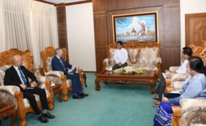 U Lwin Oo, Deputy Minister for Foreign Affairs received Mr. Pio Smith, Regional Director, Asia and Pacific Regional Office of the United Nations Population Fund (UNFPA), Bangkok, at 16:00 hrs on 19 December 2023, at the Ministry of Foreign Affairs in Nay Pyi Taw.
