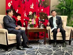 On the sidelines of the 8th Mekong-Lancang Cooperation Foreign Ministers’ Meeting held in Beijing, People’s Republic of China, U Than Swe, Deputy Prime Minister and Union Minister for Foreign Affairs of the Republic of the Union of Myanmar met with Mr. Parnpree Bahiddha Nukara, Deputy Prime Minister and Minister of Foreign Affairs of the Kingdom of Thailand at (1030) hrs on 7 December 2023, at China World Hotel in Beijing.
