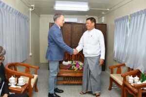 During the meeting, they exchanged views on matters relating to the ICRC’s support to the earthquake victims and future workplans of ICRC at the areas affected by the powerful Mandalay Earthquake.