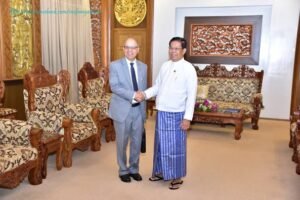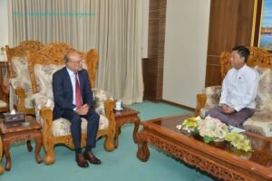 U Than Swe, Deputy Prime Minister and Union Minister for Foreign Affairs of the Republic of the Union of Myanmar, received H.E. Dr. Md. Monwar Hossain, Ambassador Extraordinary and Plenipotentiary of the People’s Republic of Bangladesh to the Republic of the Union of Myanmar, at 1000 hrs on 7 February 2025 at the Ministry of Foreign Affairs in Nay Pyi Taw.