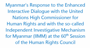 Myanmar’s Response to the Enhanced Interactive Dialogue with the United Nations High Commissioner for Human Rights and with the so-called Independent Investigative Mechanism for Myanmar (IIMM) at the 60th Session of the Human Rights Council (Geneva, 8 September 2025)