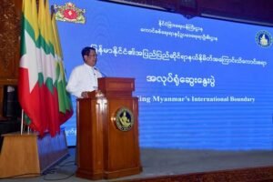 A workshop titled ‘Understanding Myanmar’s International Boundary’ was held at the Lawkanat Hall of the Ministry of Foreign Affairs, Nay Pyi Taw on 27-28 August 2025. During the Opening Ceremony, U Than Swe, Union Minister for Foreign Affairs delivered opening remarks. In his address, he emphasized the significance of boundary matters, noting that they constitute a crucial representation of state sovereignty. He also stressed the importance of efficient and effective boundary management to safeguard sovereignty, national integrity, security and stability, as well as to promote peaceful coexistence with neighbouring countries.